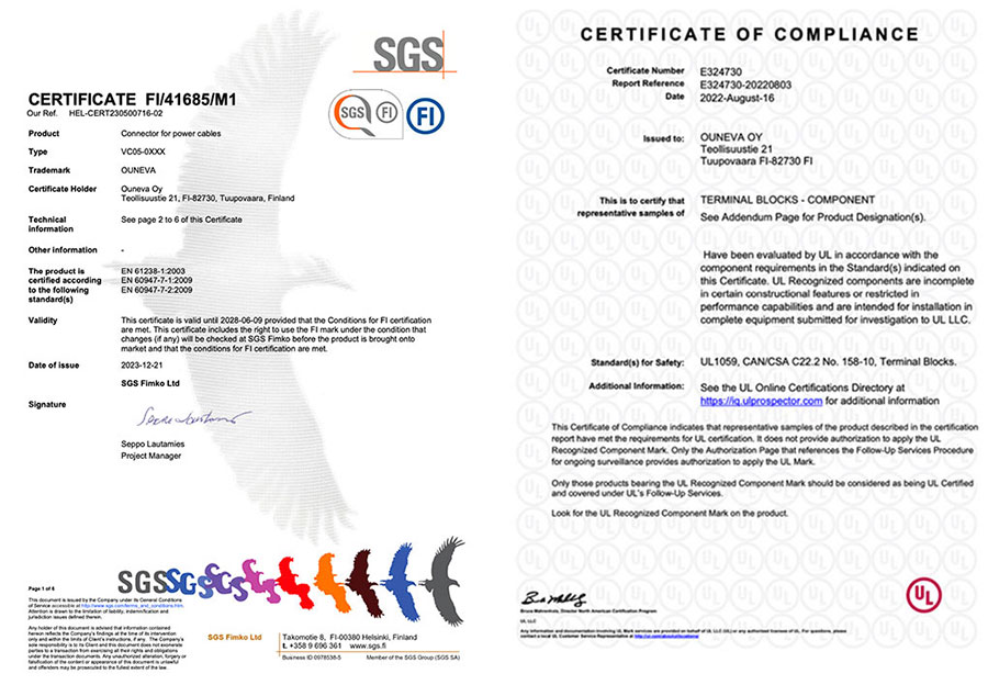 Certified connector products ensure operational safety, reliability, and compatibility with various systems and devices. At Ouneva, we recommend reviewing product certificates before making a purchase decision to avoid potentially expensive or even dangerous situations.