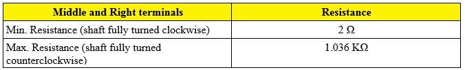Center and Right terminals. As you turn the shaft clockwise, the LED shines brighter.