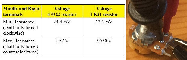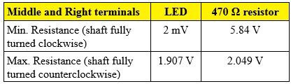 Center and Left terminals. As you turn the shaft counterclockwise, the LED shines brighter.