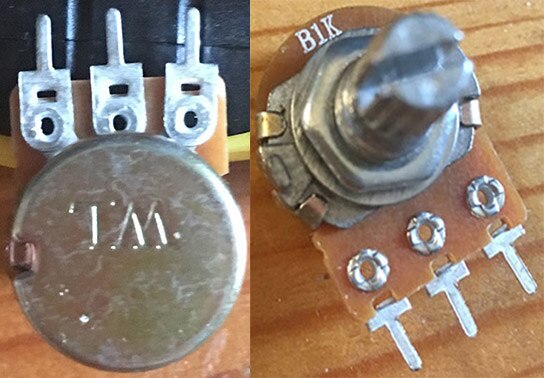Here are some photos from different angles of the potentiometer I used (before prying it open):