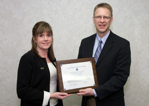 Photo Insert: During a ceremony held May 12, 2010 at Digi-Key Corporation in Thief River Falls, Minnesota, Rick Trontvet, Digi-Key's vice president of human resources, accepted a certificate of appreciation from Heather Higgins, Regional Administrator for the US Department of Labor. The US DOL presented the certificate to Digi-Key in recognition of the company's employment of veterans and active members of the US military service.