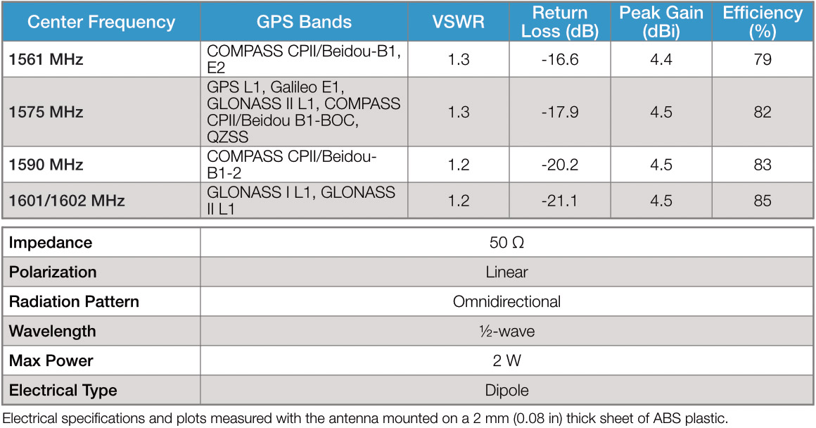 - Performance at 1.593 GHz to 1.609 GHz: