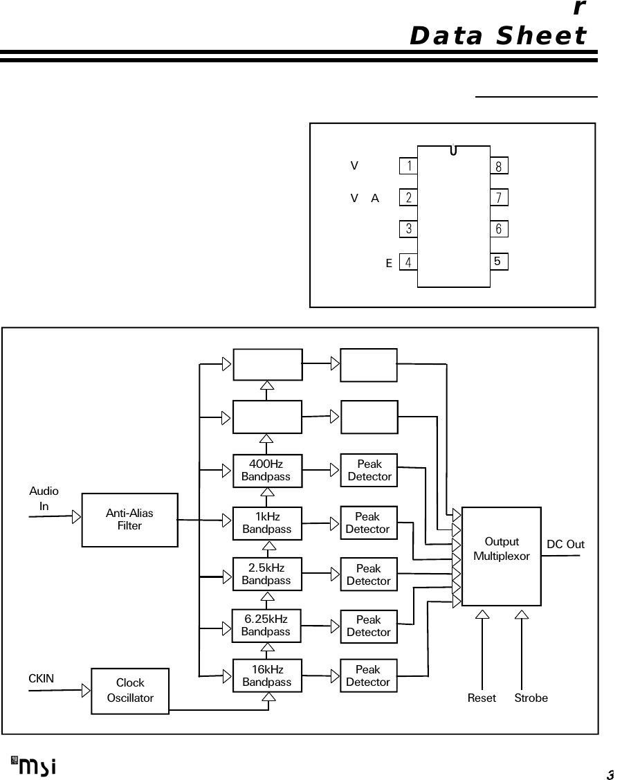 r Data Sheet V E El V A ll ZI I: El EE 3 —D —D ——D 400m Peak D Bandpass D Detector Audwo -ln__1> AnnrAlxas C 132 peak FIW Bandpass D Detector _ 4; Outpm DC 0m Mumplexer 2.5kHz Peak —{> Bandpass D Dekec‘or 6.25kHz Peak _ —D Bandpass D Demeter 16kHz Peak CK'N Clock D Bandpass D Demeter Oscluamr Reset Strobe —‘P ”my